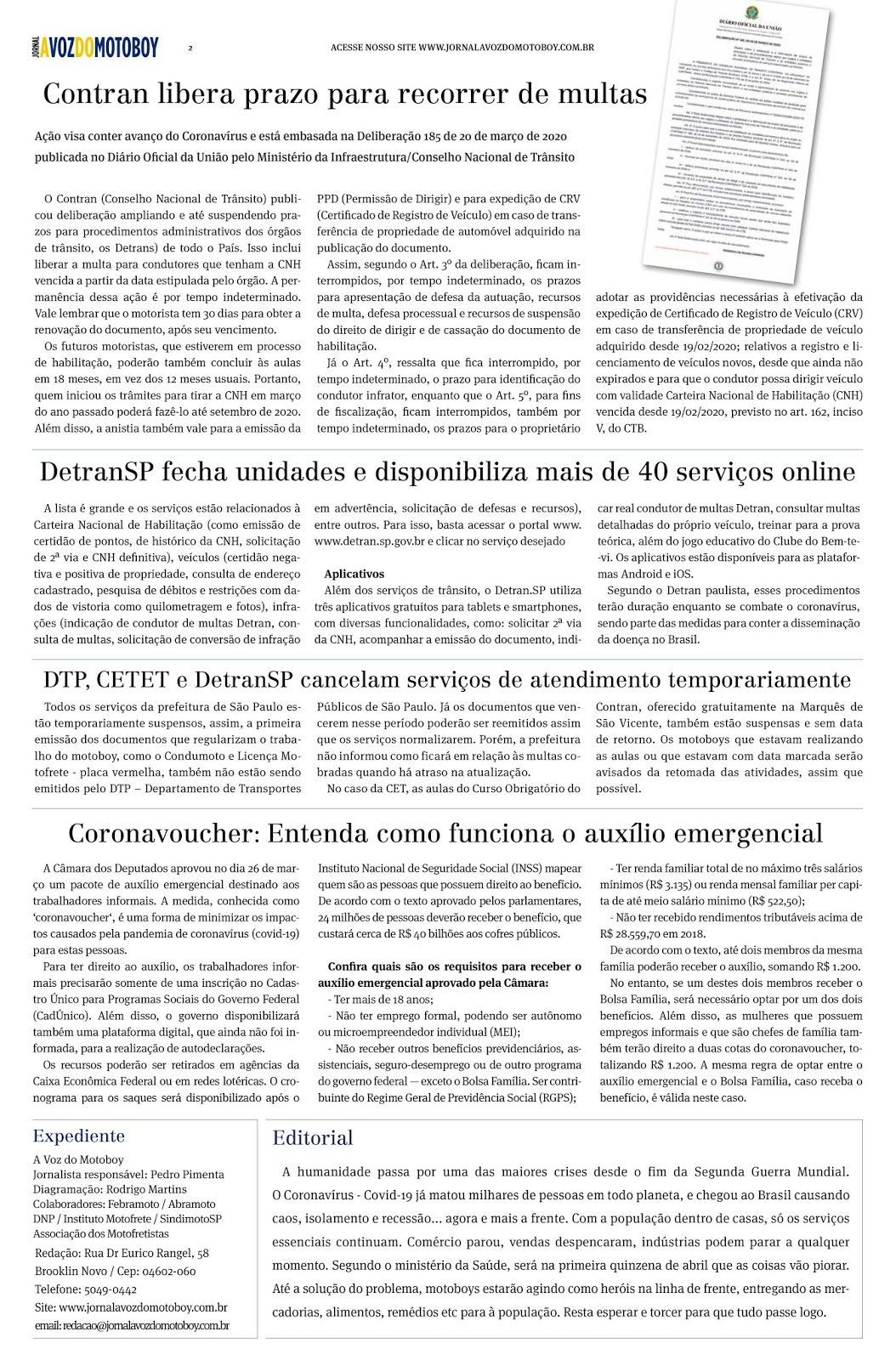 Sem categoria A Voz do Motoboy está com edição especial Coronavírus trazendo à luta do SindimotoSP para melhorar as condições de trabalho do motoboy diante da pandemia no Brasil. Leia! 31 de março de 2020 Gil dos Motoboys Acesse o site do jornal AQUI.