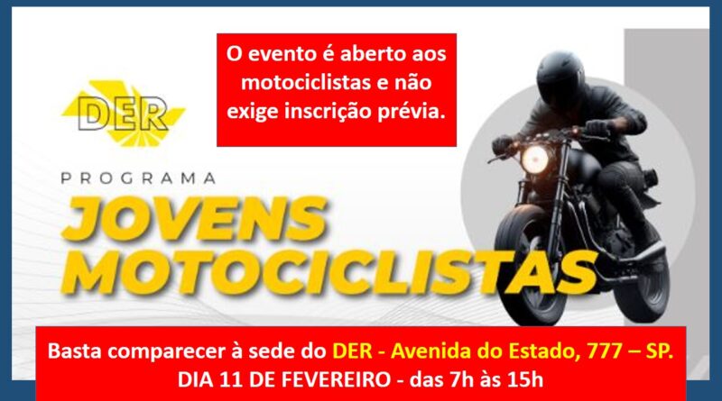 DER SP lança nesta terça-feira (11 de fevereiro) o Programa Jovens Motociclistas; evento terá vídeos educativos, atividades e distribuição de brindes