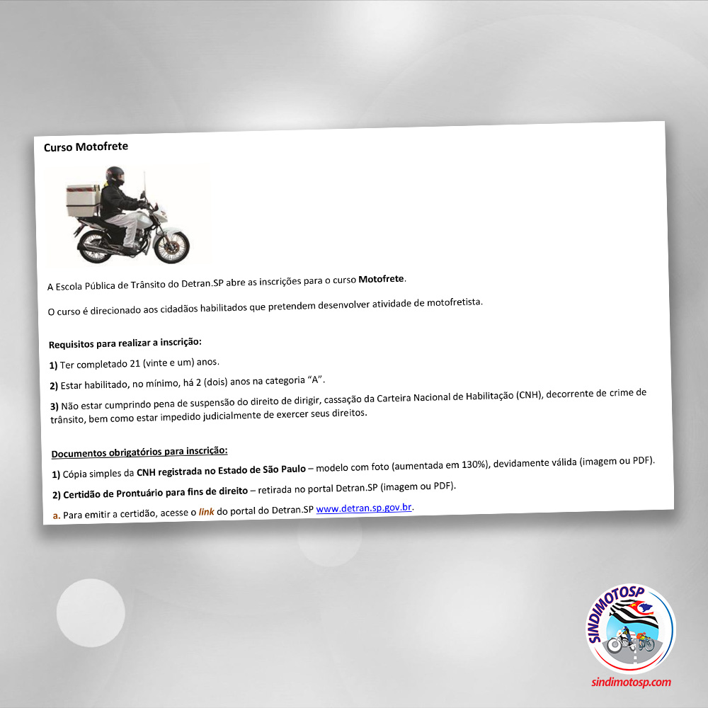 Atenção, motoboy: faça sua inscrição para o programa Motofretista Seguro. A ação é uma iniciativa que oferece facilidade em financiamento, regularização de CNH, capacitação, formação e muito mais. O programa visa criar uma rede de proteção da categoria e contribuir com a segurança de quem exerce essa atividade. Em meio ao crescente número de acidentes envolvendo entregadores, inclusive já denunciado diversas vezes pela nossa entidade, esta é uma oportunidade para todos (autônomo, MEI e CLT) se aprimorarem.