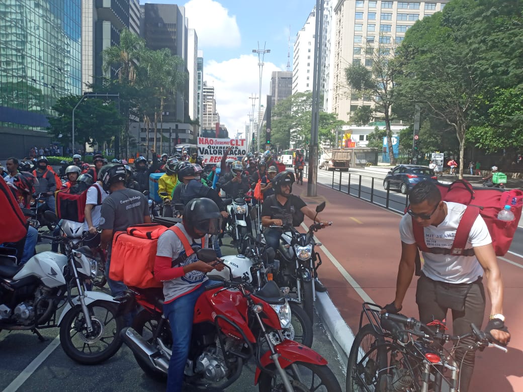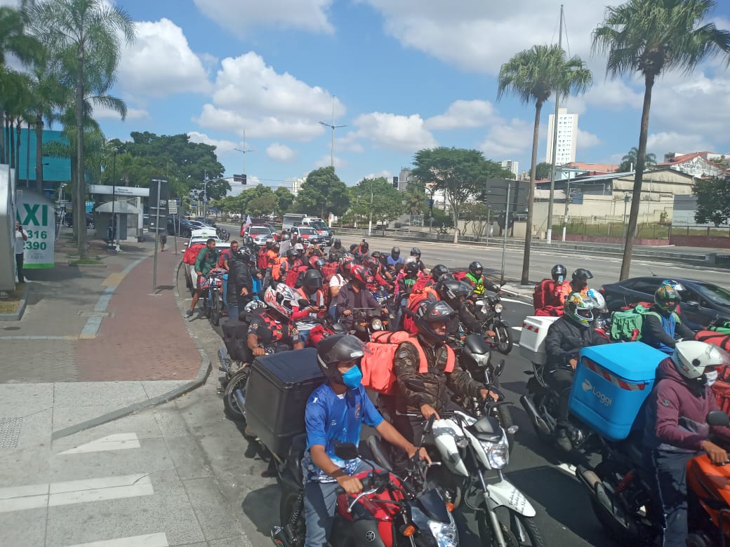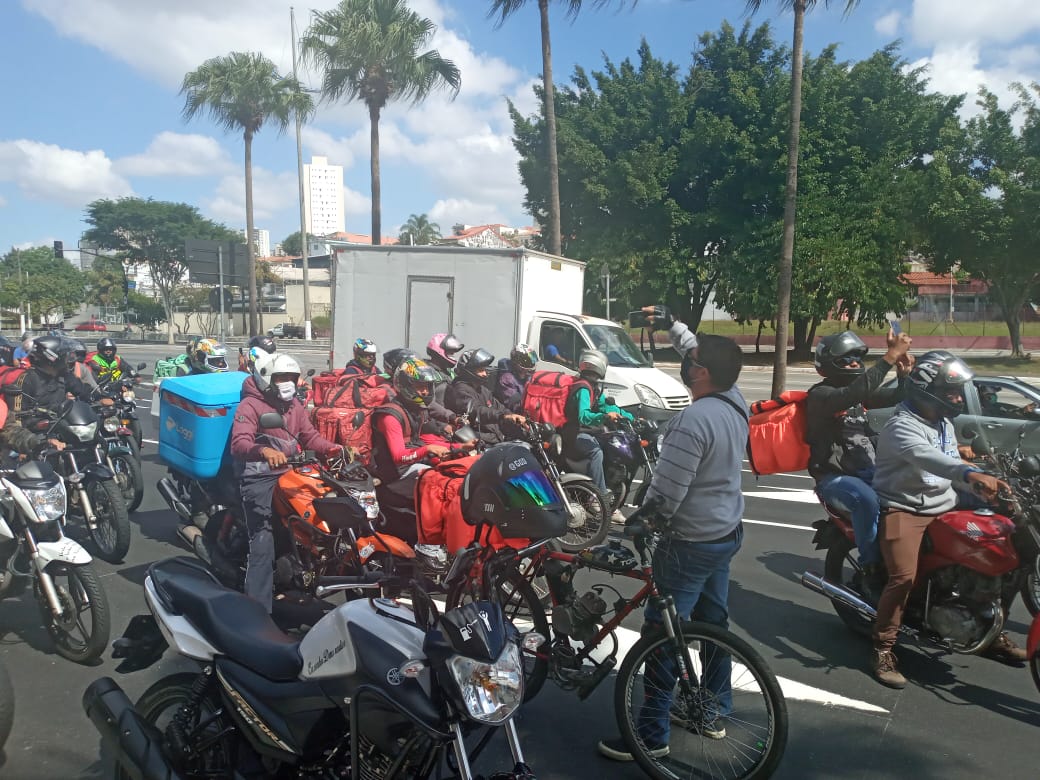 Os trabalhadores pediram aumento no valor da entrega e melhores condições de trabalho para enfrentarem à pandemia do cornavírus com mais segurança.