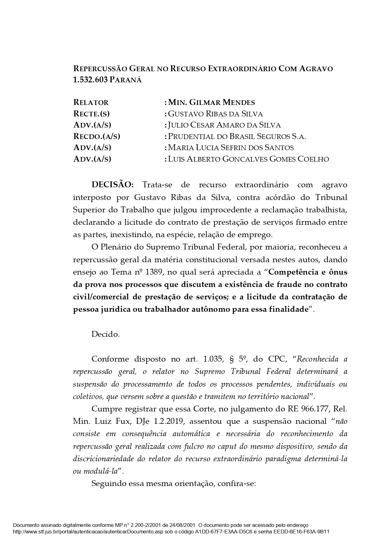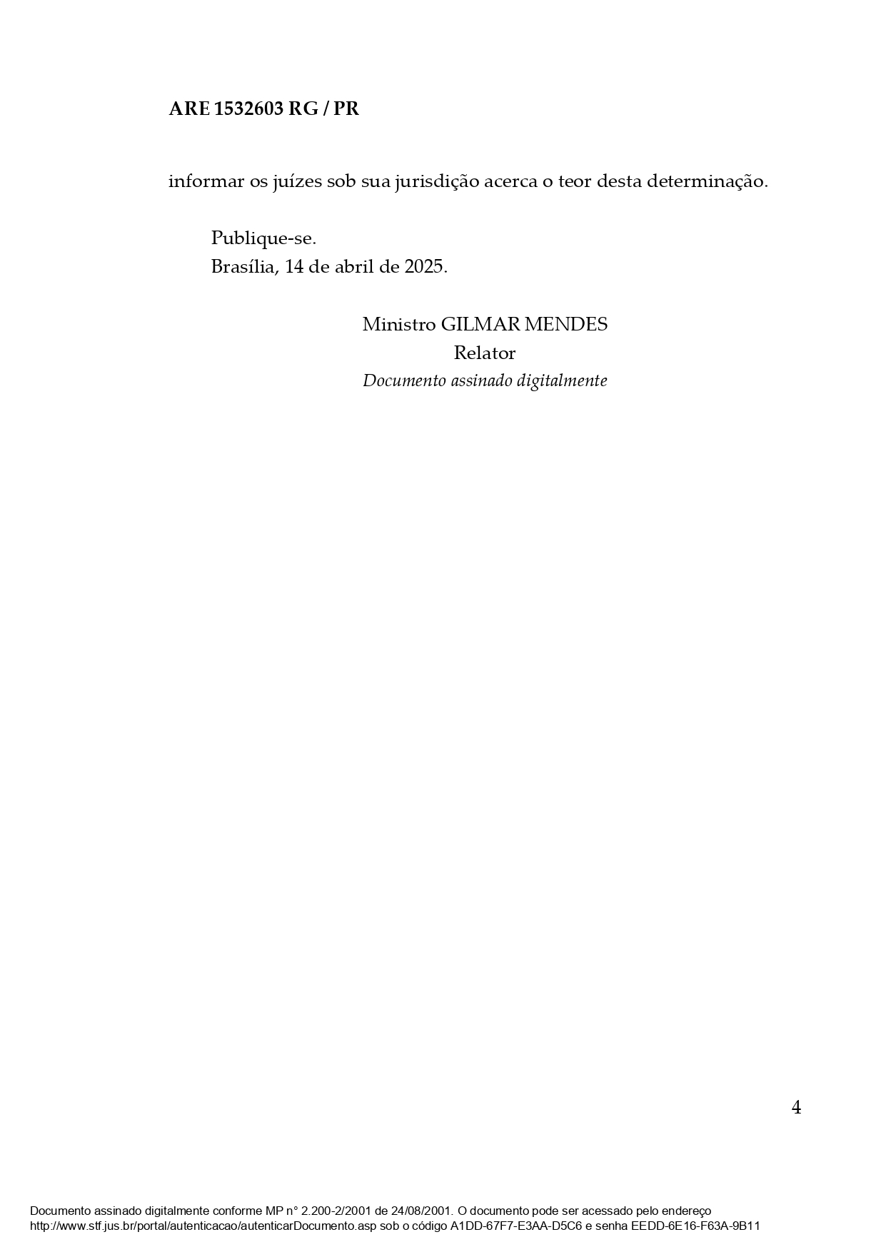 Abaixo, documento assinado pelo ministro Gilmar Mendes, do STF