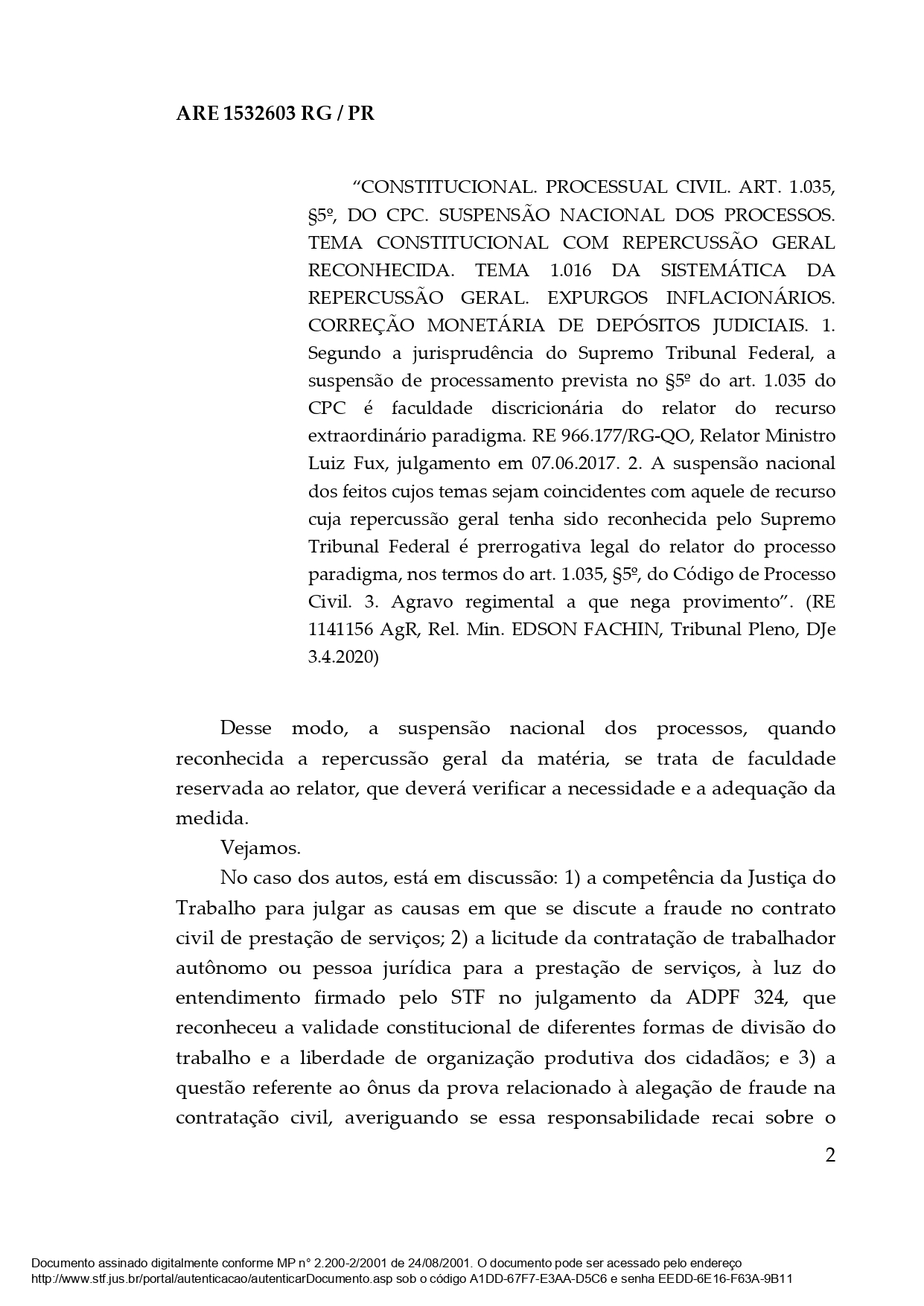 O julgamento final do STF vai tratar da validade desses contratos com pessoas jurídicas, da possibilidade de a Justiça do Trabalho julgar casos com suspeita de fraude e de quem deve arcar com o ônus da prova, ou seja, quem deve demonstrar se havia ou não vínculo empregatício.