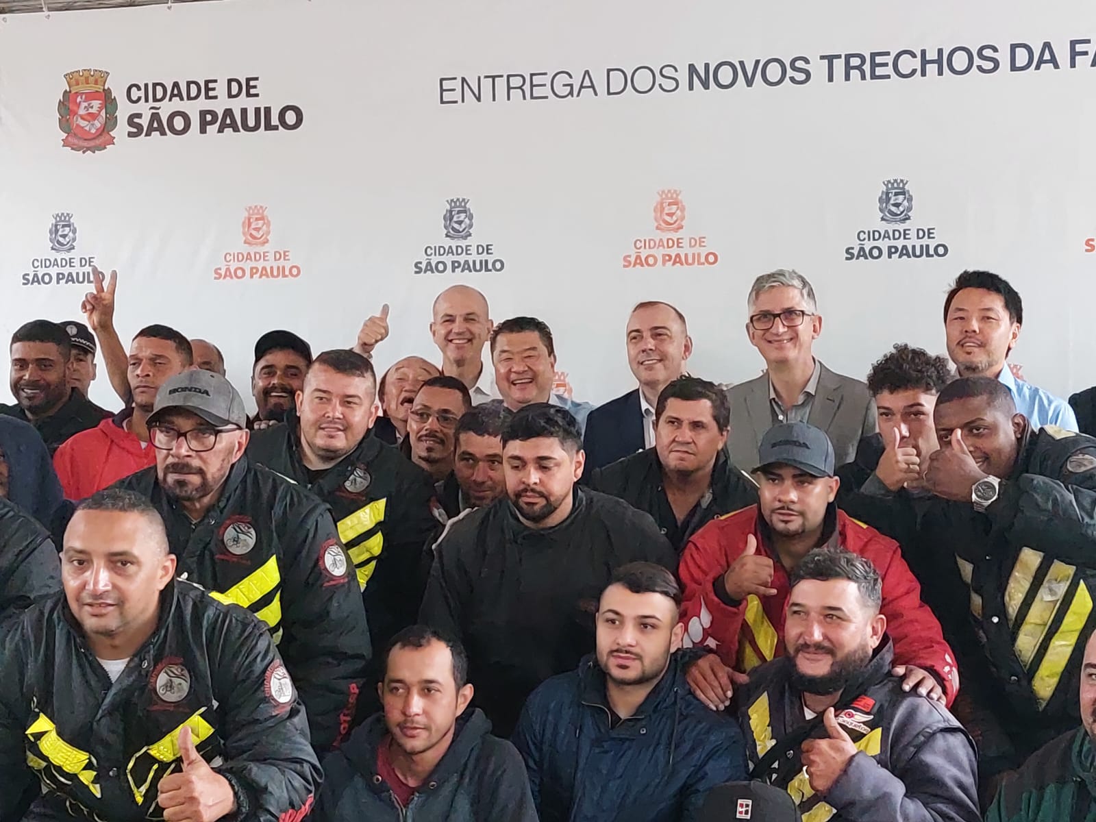 Hoje, 3 de outubro, pela manhã, autoridades públicas municipais e estaduais, civis, militares, convidados, Abraciclo e o SindimotoSP, com parte de sua diretoria, entregadores e motoboys, estiveram na entrega de trecho da Faixa Azul em mais uma importante via pública da cidade.