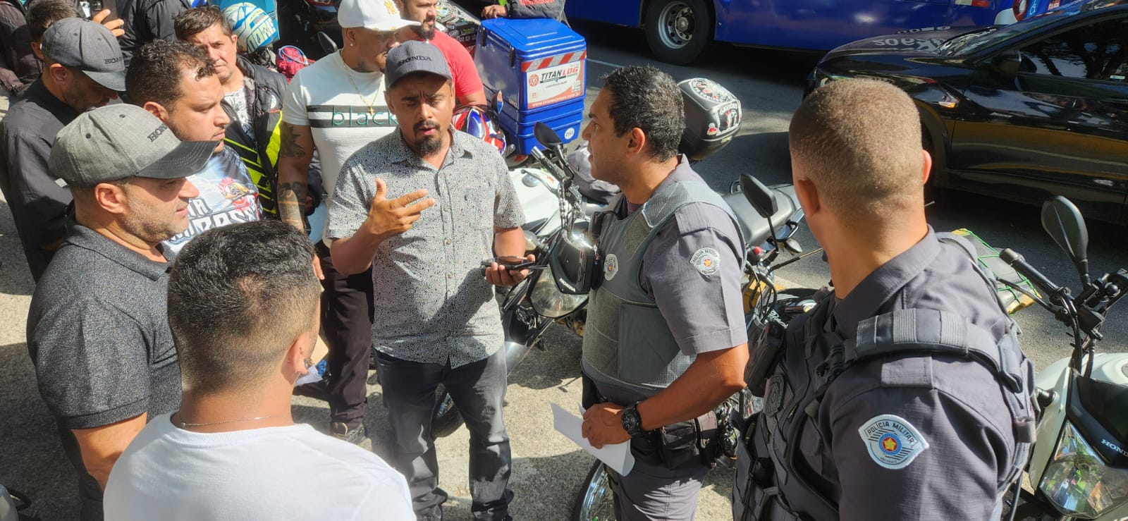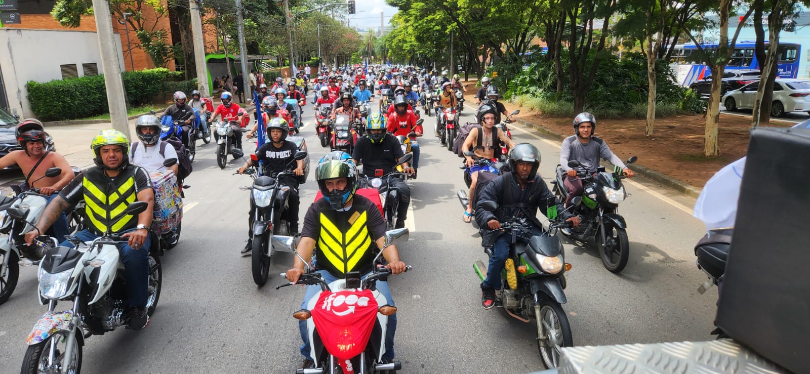 Na ocasião, várias lideranças do setor de motofrete e diretoria do SindimotoSP, discursaram a favor dos motoboys e relataram uma série de injustiças praticadas pelo iFood, por exemplo.
