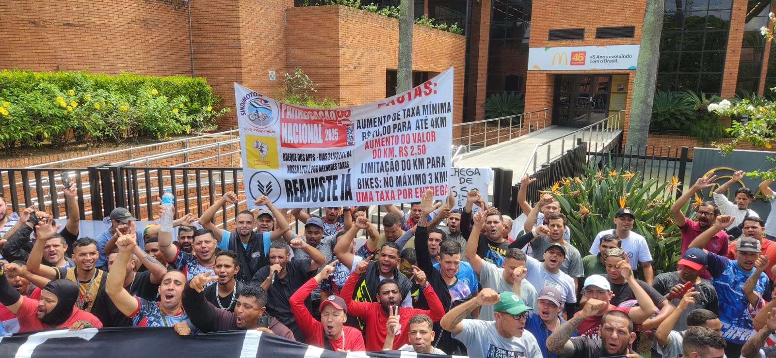 Saindo do Espaço Motoboy, em Alphaville, a manifestação seguiu para o McDonald’s, na Alameda Amazonas 253, em que cerca de 500 profissionais, entre motoboys, entregadores, ciclistas e outros, mandaram recado direto e reto para a empresa.